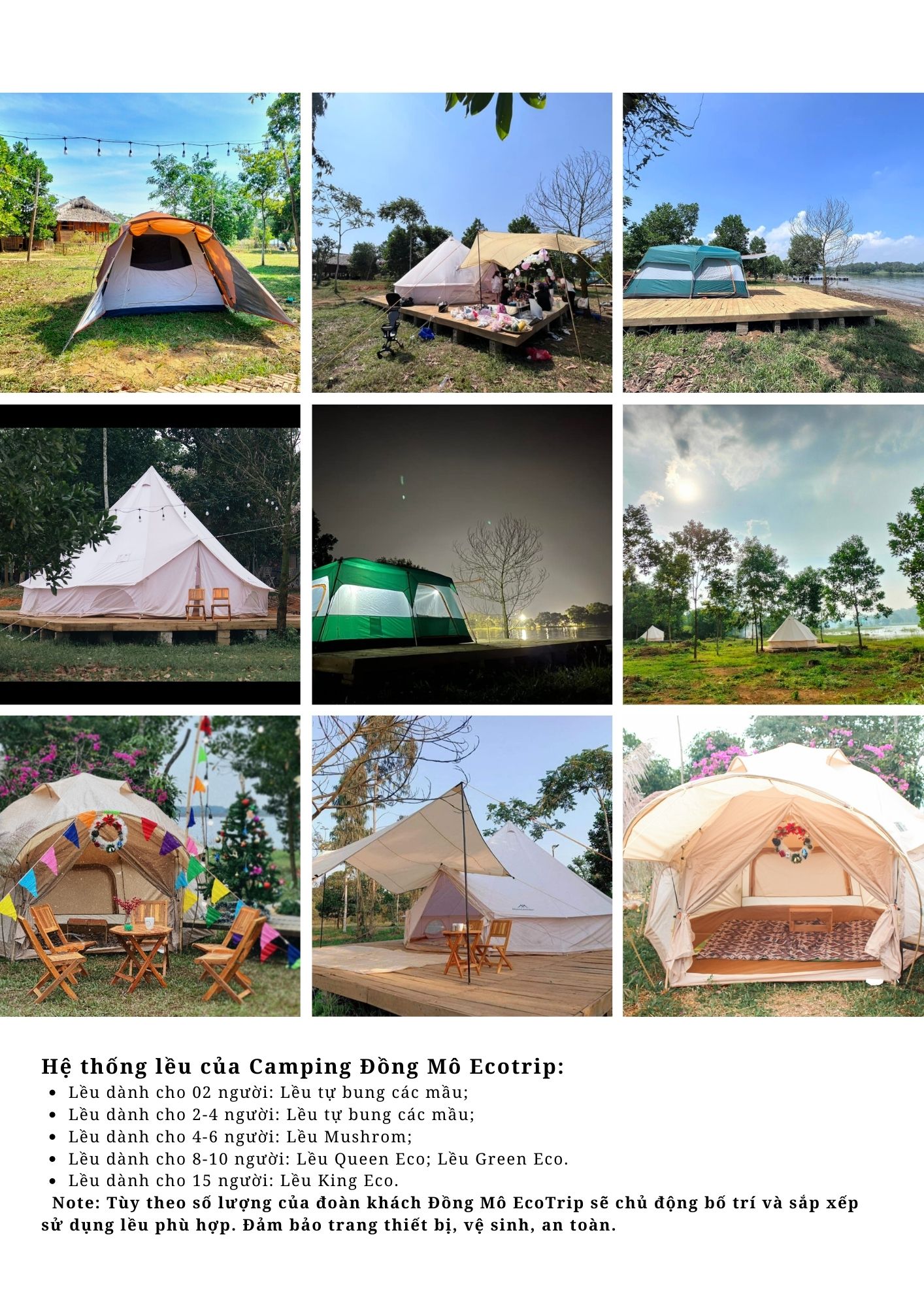 ✔️ Lều trại đầy đủ từ 2-20 người; Nhà sàn cộng đồng sức chứa 70 người